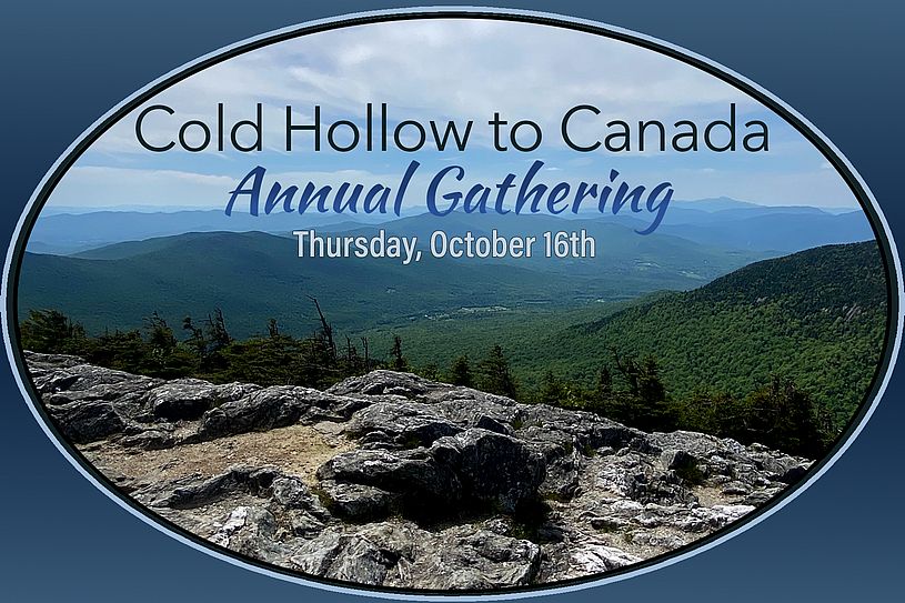 We invite you to join us for our 12th Annual Gathering at the Montgomery Town Hall starting at 6 PM on Thursday October 16th. This event is an opportunity to enjoy a delicious catered dinner provided by Cafe Oma, visit with fellow supporters and CHC Board members, bid on local goods and experiences in a raffle fundraiser, browse new CHC merchandise for sale, and listen to our guest speaker.