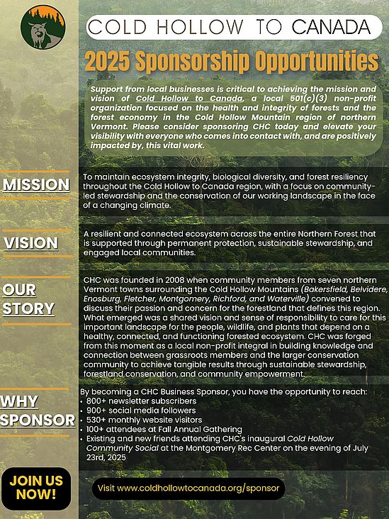 Cold Hollow to Canada is seeking to engage with local and regional businesses in opportunities for sponsorship and support. We offer several Levels of donor contribution to meet your fiscal capacity, each of which will reward your business with branding and promotional opportunities, in-person and virtual interaction with our CHC community, and more. Our organization serves 7 towns in the Northern Franklin and Lamoille County, and has a constituent base that extends throughout New England, Quebec, and beyond. Recent staffing increases in our organization now allow us to commit to even more dedicated and driven membership drives that broaden our social media presence, impact, and membership.