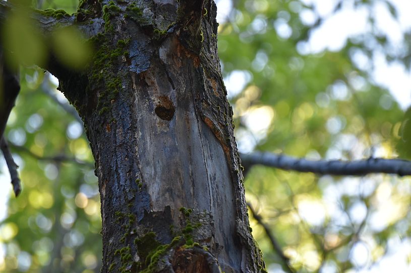 At 6:45, we crossed the road, heading west into the forest where a patch cut had been made several years ago. It seemed unusually quiet, no birds observed in the cut, but it was warming up a bit and the sun was starting to take effect. We listened for the Canada Warbler we had seen (and Jessica photographed) back on May 29, but no trace, so we moved on until we came to a spot where a mix of mature deciduous and coniferous trees along the path were not so dense and the sun was starting to warm the canopies. That is when we heard the agitated calls of Black-throated Green Warblers. We observed three adults, foraging and encircling a specific small area, constantly calling and collecting an assortment of food, some we were confident were beetles and flying insects… We knew we had found another nesting species, and so we watched. (That’s when we heard the Canada Warbler, also in the same trees, which eventually gave me a very quick look). We decided to move on after about fifteen minutes of observing the warblers, and having determined one tree that likely had the nest. It was about twenty-five feet up, in a dense section of a fir tree. We would have another chance of confirming nesting when we returned on the same trail.
